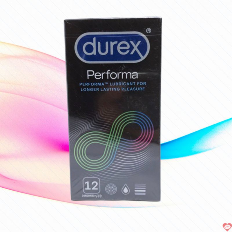 Bcs kéo dài thời gian Durex Performa có chứa chất bôi trơn giúp dễ dàng đeo bao phản hồi , co giãn tốt đem lại cảm giác thỏa mãn cho cả hai bạn.Thông số kỹ thuật: độ dài ≥ 180 mm kho hàng , bề rộng 52,5mm Thành phần: Mủ cao su thiên nhiên phụ kiện , chất bôi trơn Silicon + Zeus.