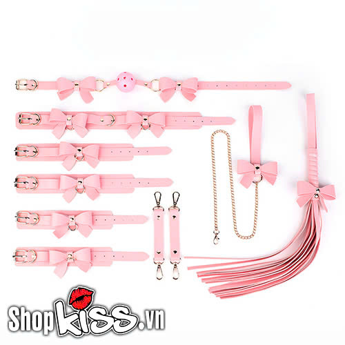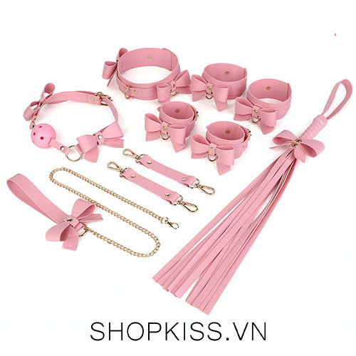 Bộ dụng cụ bạo dâm 5 món màu hồng đính nơ nơi nào được đính nơ trên mỗi sản phẩm Đức rất xinh xắn.