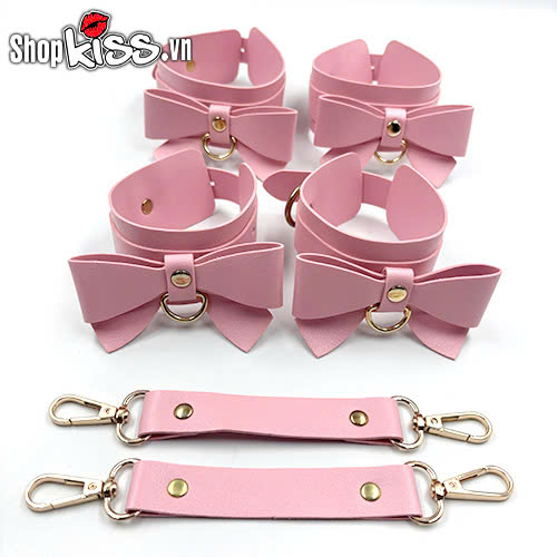 Bộ dụng cụ bạo dâm 5 món màu hồng đính nơ nhanh nhất được làm từ chất liệu da PU có nên chọn và kim loại cao cấp.