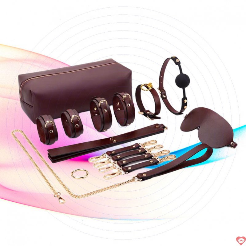 Đặc điểm: Gồm 1 bộ nhiều món khác nhau sử dụng trong quan hệ tình dục như còng tay cung cấp , còng chân bền , bịt mắt cao cấp , khóa cổ xuất xứ , roi da đấu giá , khóa hàm voucher , dây khóa tay chân amazon , nút ngậm miệng.