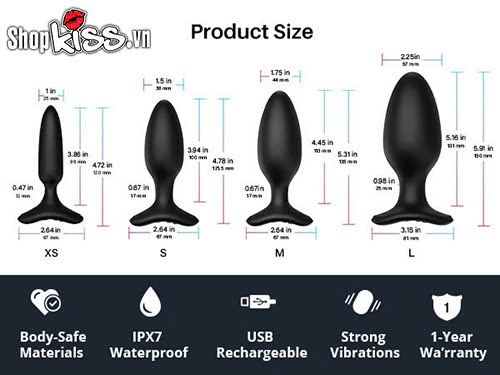 Kích thước Dụng cụ kích thích hậu môn Lovense Hush 2 nhiều size.Kích thước bảng giá của Dụng cụ kích thích hậu môn Lovense Hush 2.