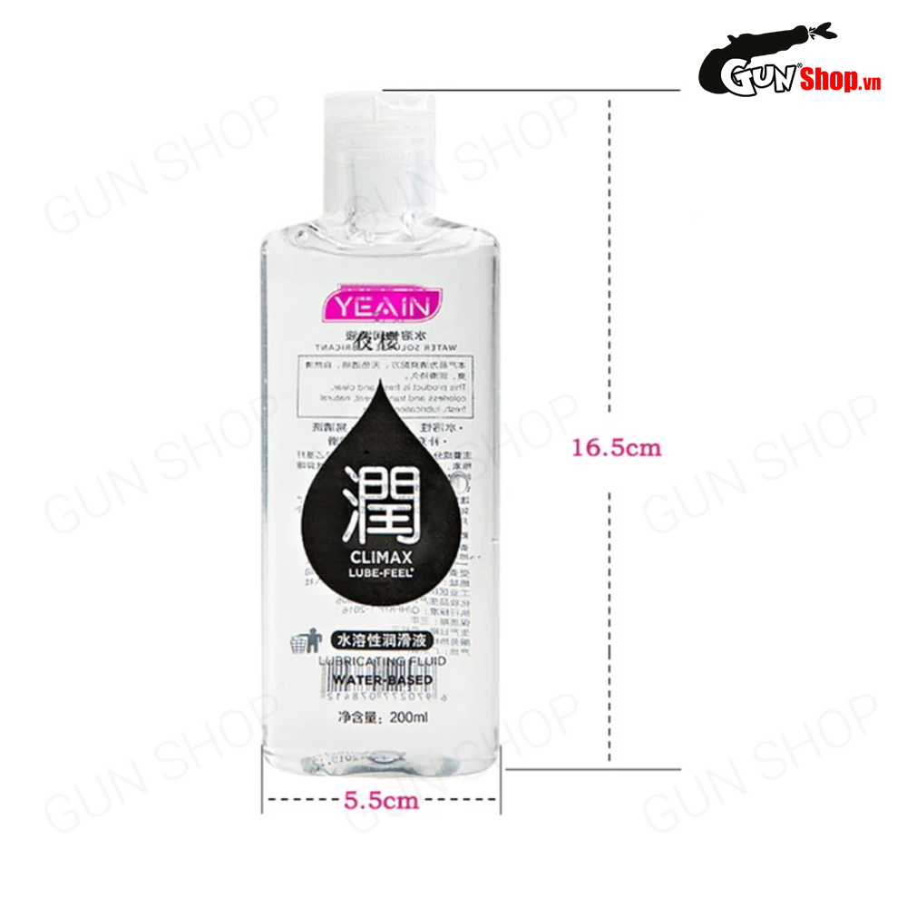 - Thông tin: Gel bôi trơn Yeain Climax Lube Feel có thành phần gốc nước, kết cấu dạng gel lỏng, được sử dụng để giảm ma sát và hạn chế tình trạng đau rát khi quan hệ. Sản phẩm tinh khiết theo công nghệ khép kín nên lành tính và thân thiện với làn da vùng nhạy cảm và cơ thể.